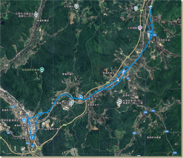 このままバイパス国道に沿って進んで、岡山広島の県境を越える。