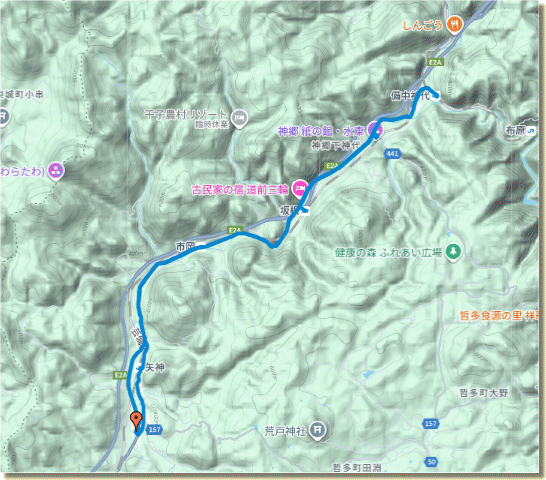 道の駅に沿って国道182号線が通っているが、そっちには行かない。昔からの道を行く。山沿いの道を行く。