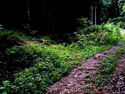 林道の分岐、ここから山道