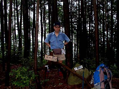 山頂は平坦、植林の下生えはほとんどない。