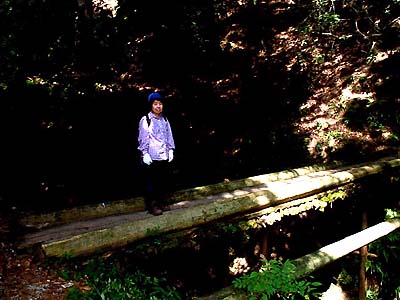涸れ沢にかかる丸太橋