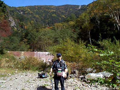 北沢赤岳鉱泉への道、車道終点の堰堤広場