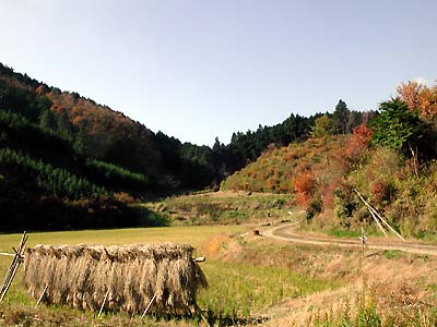 傾斜のゆるい田んぼが続きます