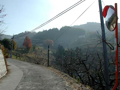 七曲がり八曲がりの柿畑のなかの道