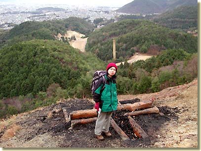 帆柱の先に立つと、京都市街、大文字、比叡山