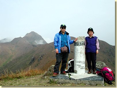 ピラミッドピークの先端、奥に馬鞍山が見える